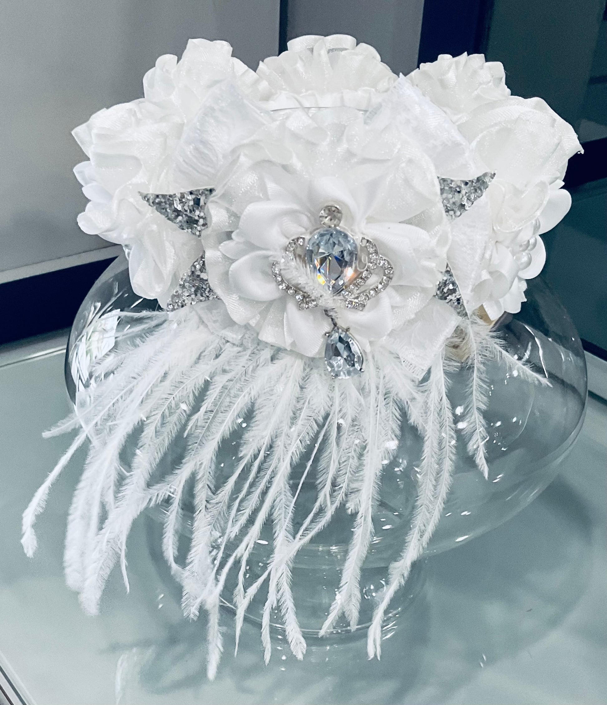 A hair accessory for your little girl, adorned with handmade flowers made from high-quality materials that give it a delicate and elegant look. Ideal for complementing hairstyles for special occasions or adding a charming and sophisticated touch to her everyday look.Made In USA.